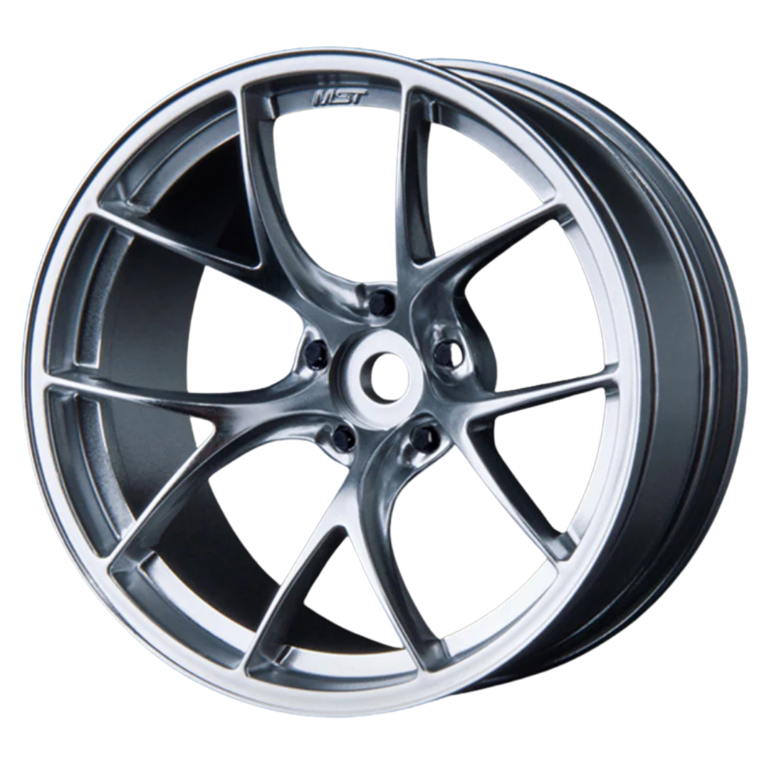 High-quality MST RID wheels designed for 1/10 drift and touring cars, offering a stylish flat silver finish with optimal width and offset for performance handling.