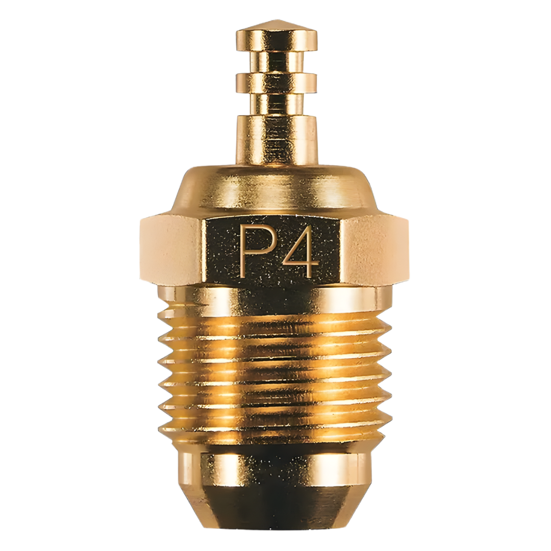 The OS Engines P4 Gold Plated Turbo Glow Plug is engineered for super-hot performance in .18 to .28 cu. in. turbo head off-road racing engines. Celebrating OS's 80th anniversary, this gold-plated plug not only stands out visually but also delivers enhanced throttle response, acceleration, and engine efficiency.