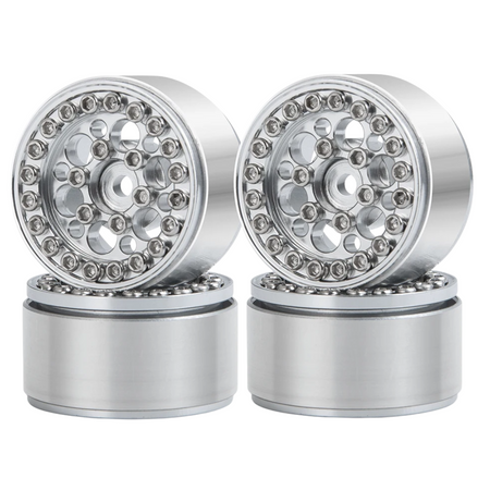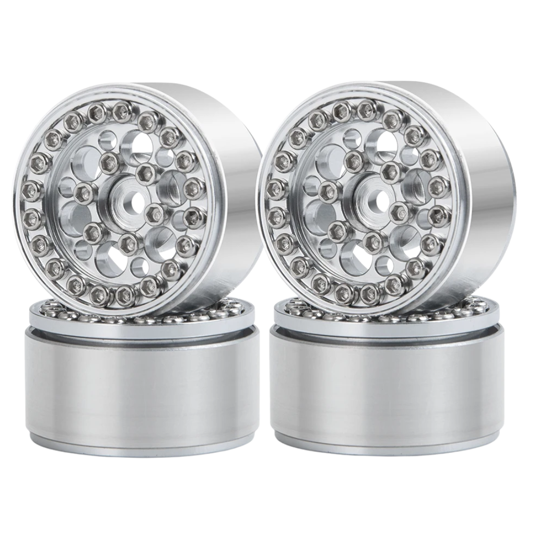 Durable 1.0-inch metal alloy beadlock wheel rims designed for improved performance and style on 1/24 and 1/18 scale RC crawler cars including Axial SCX24 and TRX4M.