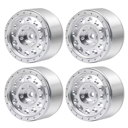 Durable 1.0-inch metal alloy beadlock wheel rims designed for improved performance and style on 1/24 and 1/18 scale RC crawler cars including Axial SCX24 and TRX4M.