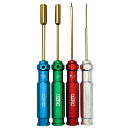 The OZRC 4-piece Alloy Tools Kit is a must-have for hobbyists and RC enthusiasts, offering precision hex drivers and nut drivers in a durable lightweight design for efficient maintenance and repairs.
