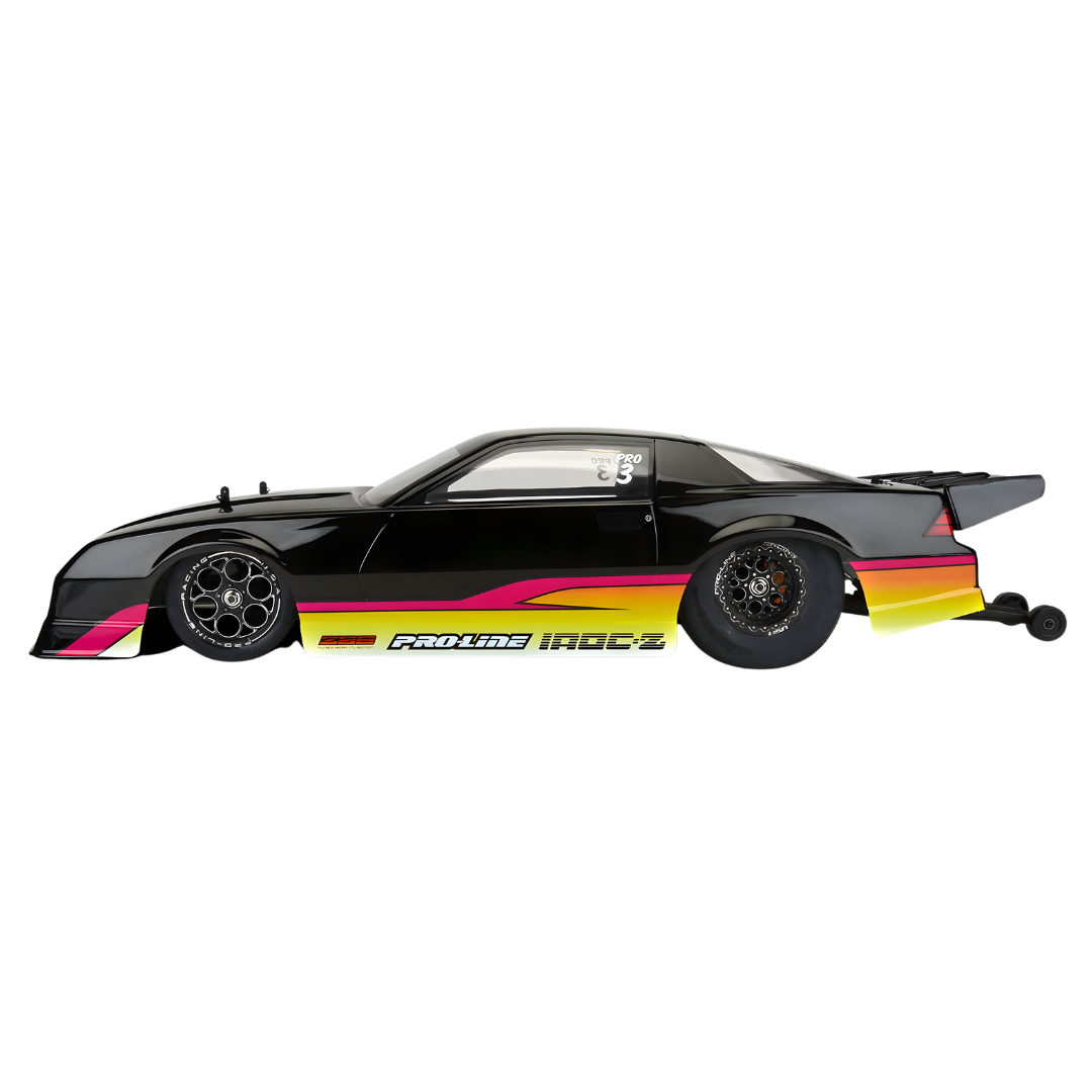 Celebrate four decades of Pro-Line excellence with this 40th Anniversary Special Edition pre-painted and pre-cut 1985 Chevrolet Camaro IROC-Z drag body in jet black. Designed for No-Prep SC drag racing, this officially licensed body brings the bold lines of the '80s F-body muscle car to your Losi 22S Drag Car or similar SC-based chassis. Includes a limited edition Pro-Line collector’s coin.