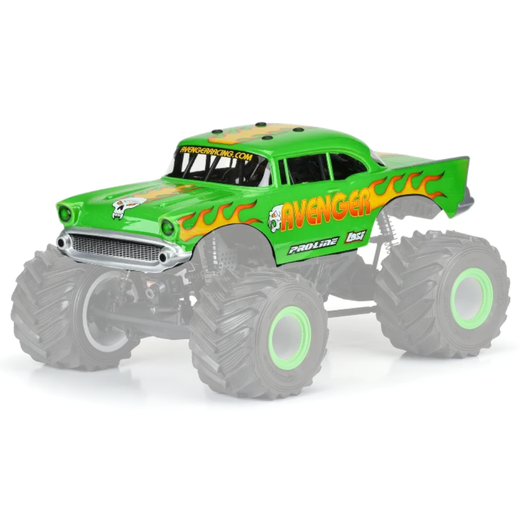 Customise your RC with a piece of muscle car history using the Pro-Line 1/8 1957 Chevy Bel Air "Avenger" unpainted body shell. Inspired by the iconic '57 Chevy, this aggressive design is perfect for transforming your 1/8 scale RC into a true classic. Crafted from durable polycarbonate, it is built to withstand high-speed racing, bashing, and crawling adventures.