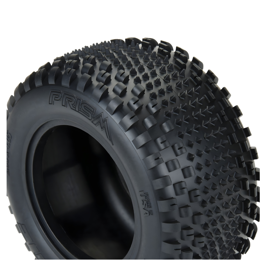 The Pro-Line Prism T CR3 2.2" Front Carpet Tyres are engineered for high-grip indoor carpet racing. Featuring ultra-sharp Prism-shaped pins combined with wedge-style outer pins, they deliver massive steering response without the edgy feel of traditional full pin tyres. Designed specifically for 1/10 stadium truck carpet competition.