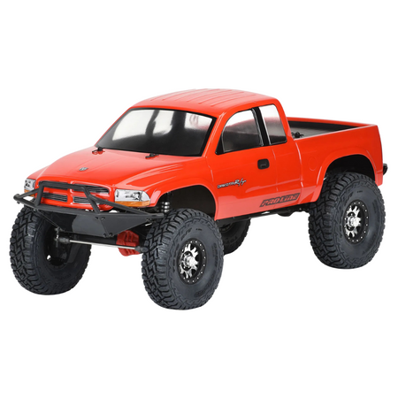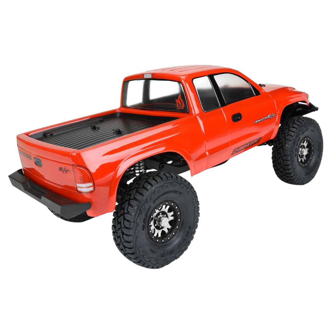 The Pro-Line 1997 Dodge Dakota clear body delivers classic Mopar styling for 1/10 scale crawlers with a 12.3" wheelbase. Officially licensed and made from high-quality polycarbonate, it features oversized fender openings and a compact footprint to enhance trail performance on narrow courses.