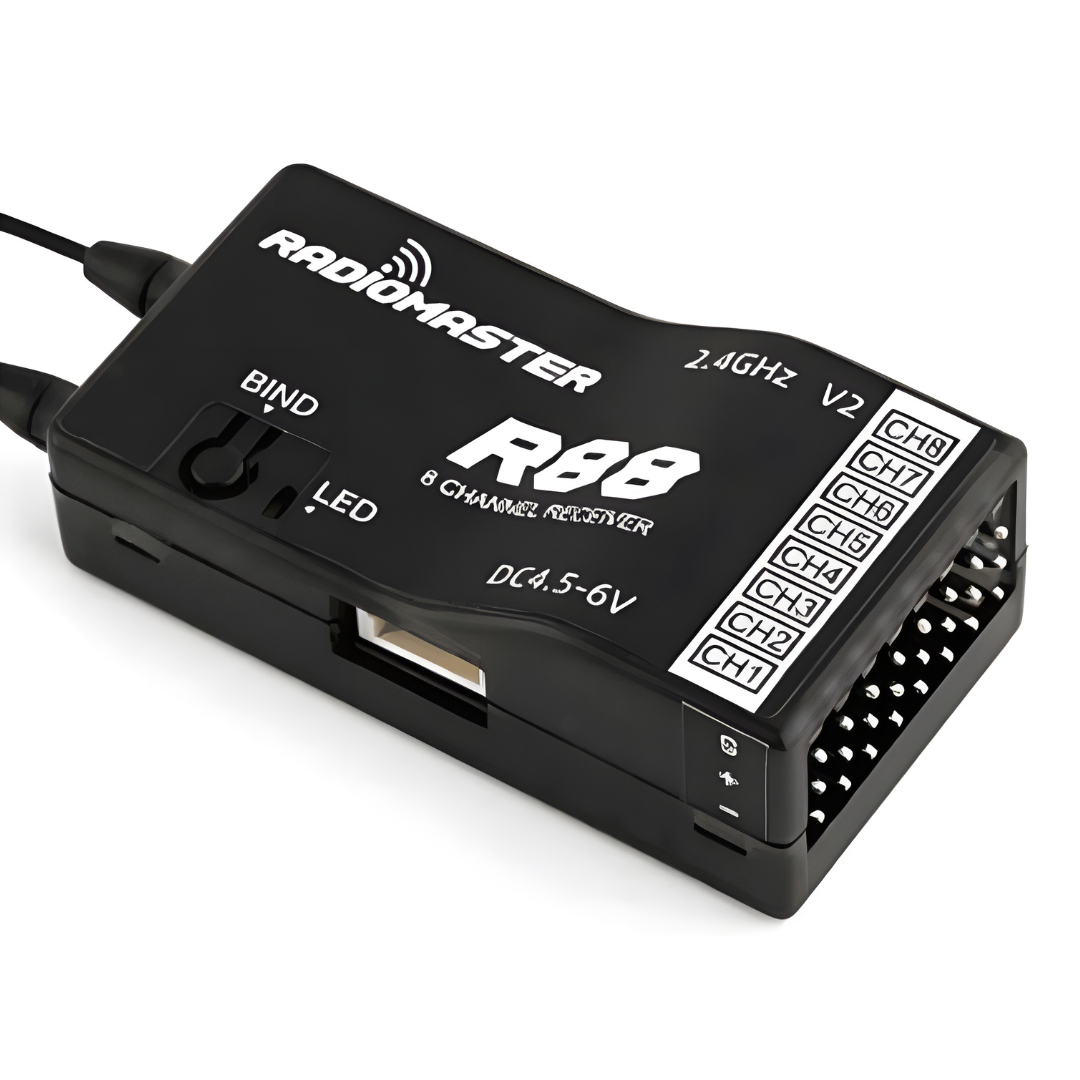 The RadioMaster R88 V2 receiver is designed for RC enthusiasts seeking reliable performance and compatibility. Supporting FrSky D8, D16, and Futaba SFHSS protocols, it offers excellent range and versatility for drones and RC models.