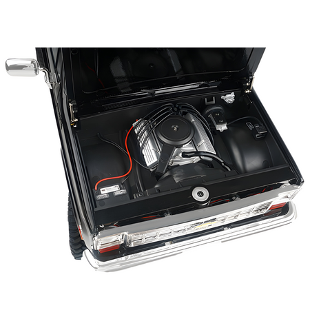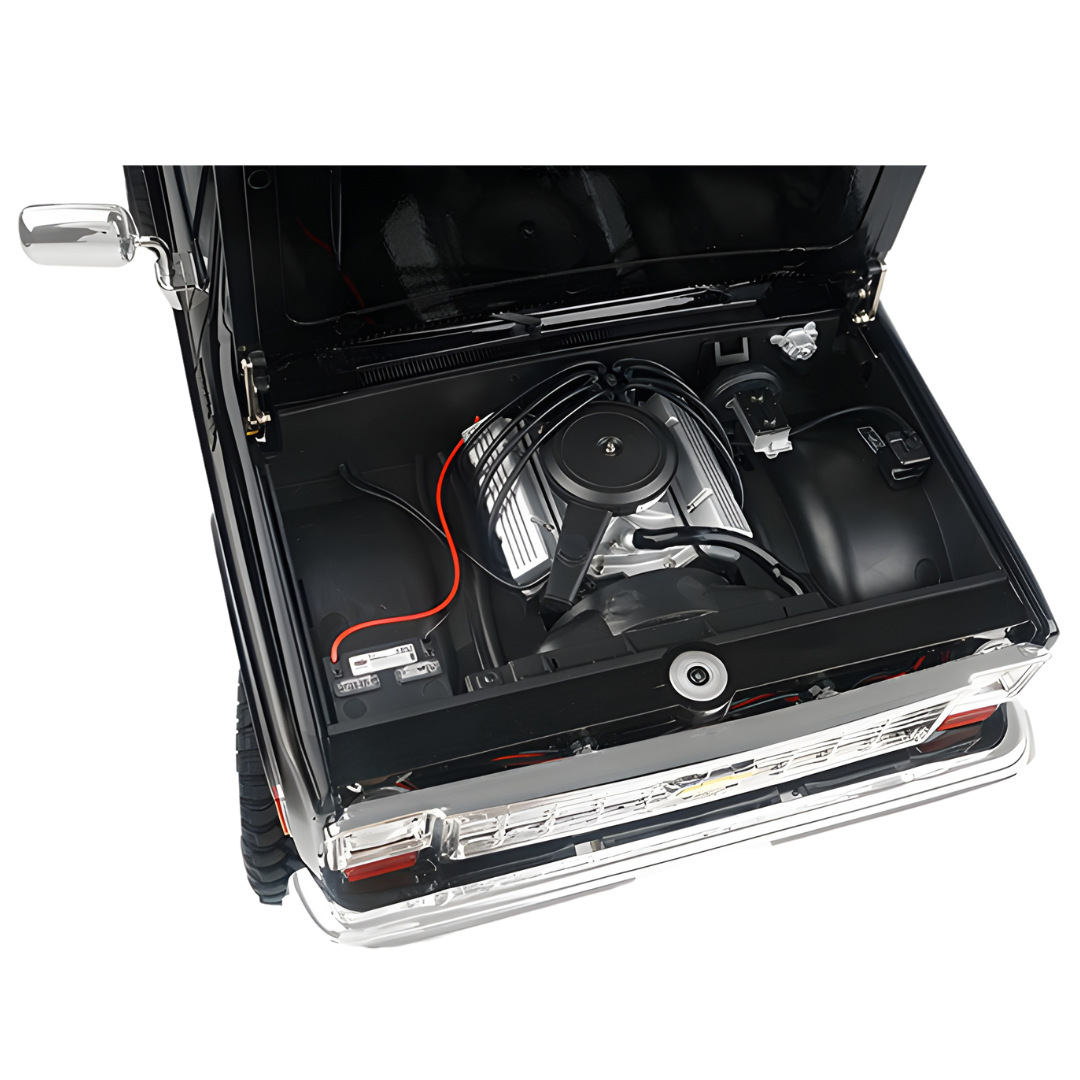 Featuring a moulded drop bed, functional tailgate, moulded interior, an opening hood, two interchangeable grills, and a V8 engine bay, this model comes packed with scale details! Under the hood, the engine bay features a dress-up kit and premium additions.