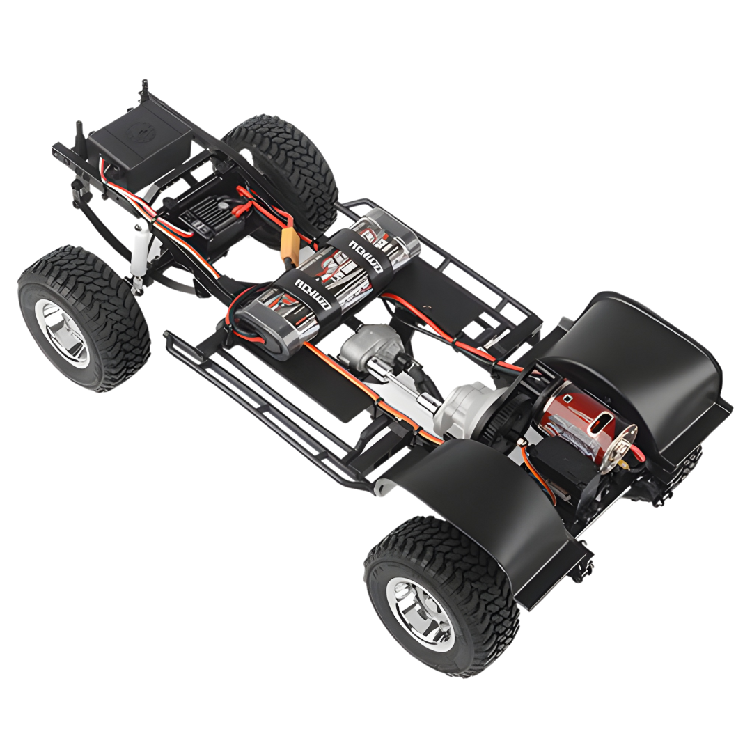 The Trail Finder 2 LWB chassis has an industry 12.3’' wheelbase and comes loaded with an R3 Single Speed Transmission, 540 45T Crawler Brushed Motor, Lift Blocks, RC4WD Ultimate Scale Shocks, and Outcry III Waterproof ESC, providing trustworthy performance! For a smoother ride, this setup comes equipped with our Super Soft Leaf Springs, two installed in each corner, and extra leaf springs in the parts bag to fine-tune your suspension needs!
