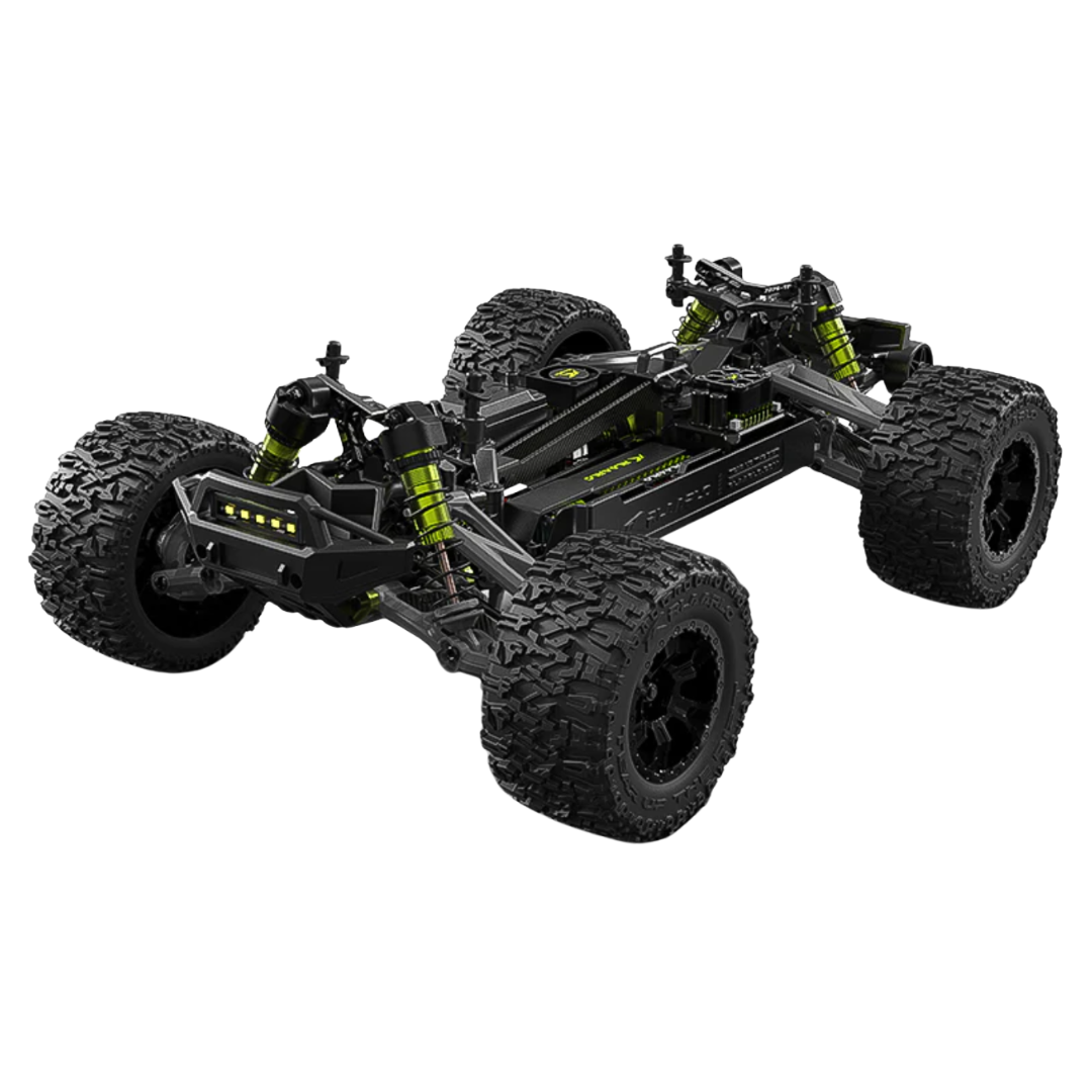 The Rlaarlo Carbon Fiber MINI 1:10 Scale RTR Brushless Monster Truck (RZ001B-C) delivers unmatched innovation with the world’s first small-scale central differential structure, carbon fibre chassis reinforcements, and a precision gyroscope system for maximum stability and performance across varied terrain.