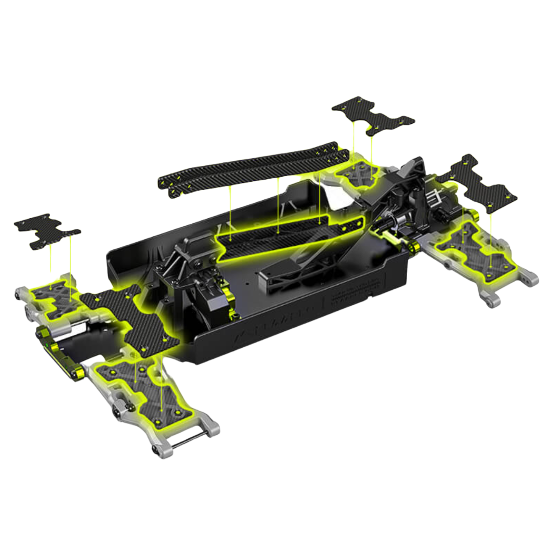 - Carbon fibre chassis components improve durability and impact resistance