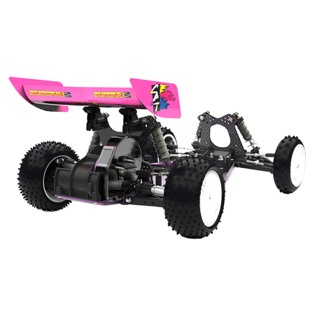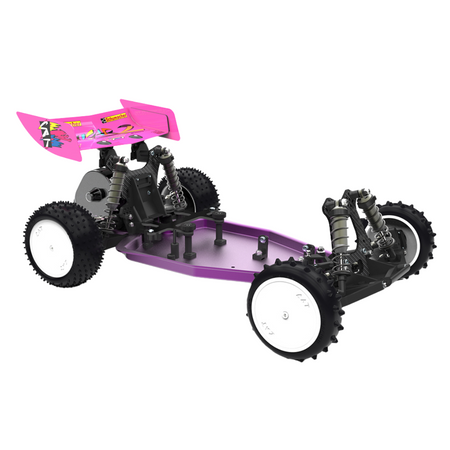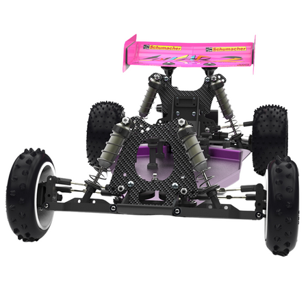 The Cougar 2 Works Classic is a reproduction of the iconic Schumacher 2WD buggy from the late 80s and early 90s. This model incorporates modern updates for enhanced durability and compatibility while retaining the charm and performance of the original design. With its eye-catching violet anodized chassis and high-performance features, this buggy is perfect for vintage racing enthusiasts and collectors alike.