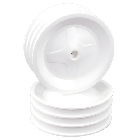 Pair of white front wheels designed to fit Schumacher CAT XLS Masami, Top Cat, Cougar, and ProCat models. Featuring 8mm castle-style fittings and a 2.0 inch diameter, these wheels are ideal for vintage restoration or racing use.