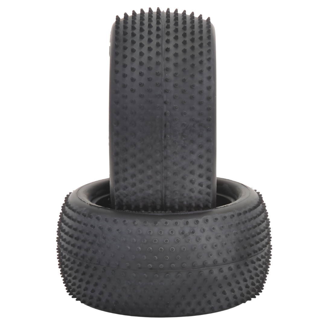 The Schumacher Mini Pin rear tyre in Yellow compound is ideal for indoor carpet racing, multi-surface tracks, and dry astroturf, offering exceptional traction and control where maximum grip is essential.