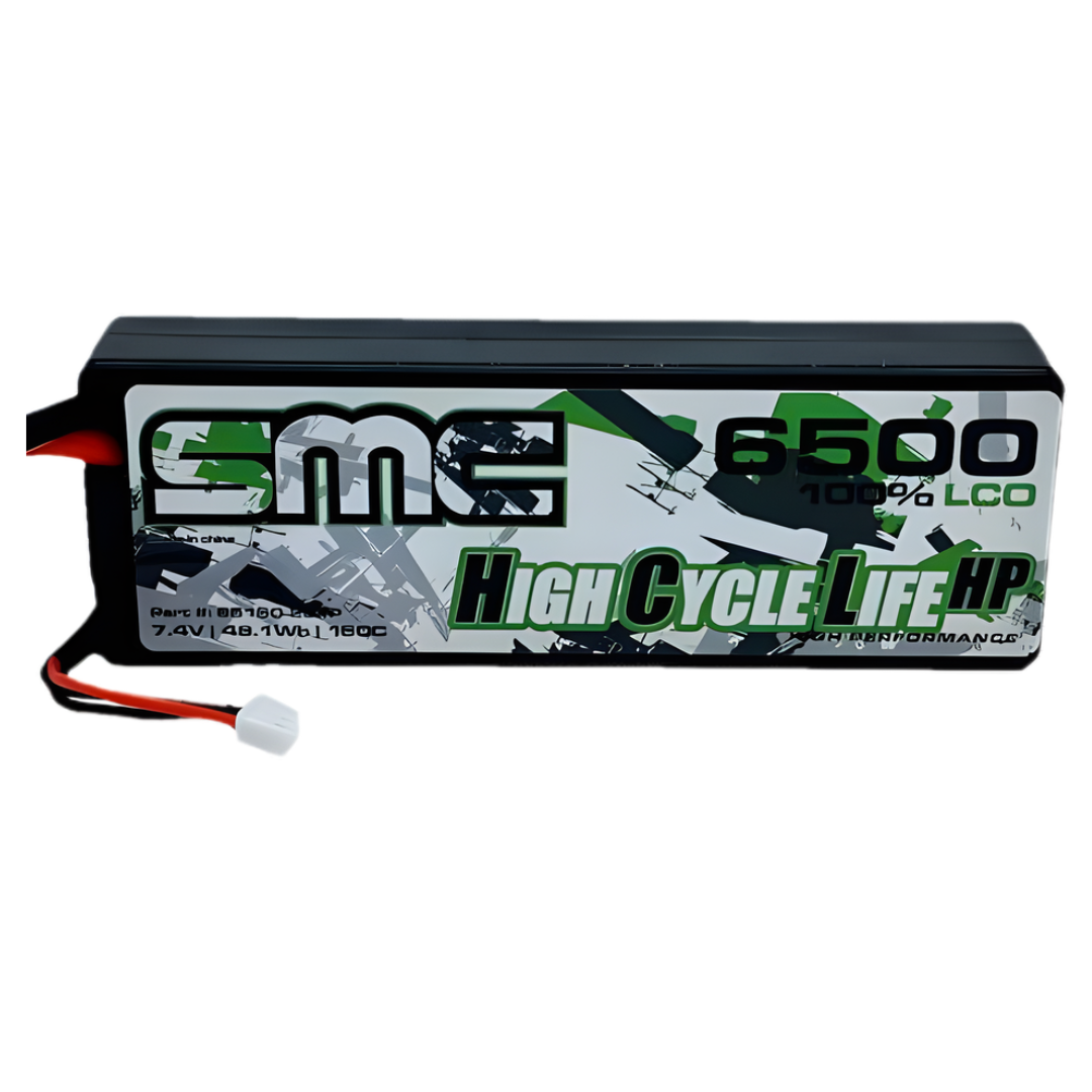 The SMC HCL-HP 7.4V 6500mAh 150C LiPo battery is designed for RC enthusiasts seeking maximum run time and performance. Featuring 100% LCO cathodes and low internal resistance, it delivers excellent acceleration, consistent output, and cooler operation. Its SC5 connector is fully compatible with EC5 and IC5 systems.