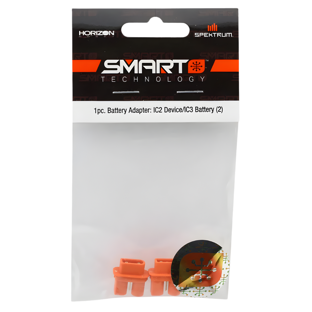 The Spektrum IC2 Device to IC3 Battery Adapters offer a streamlined solution for connecting IC3-equipped batteries to IC2-compatible devices. Their compact, one-piece design ensures reliable power transfer and reduced wiring clutter, making them ideal for simplifying your RC setup.
