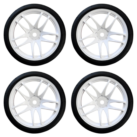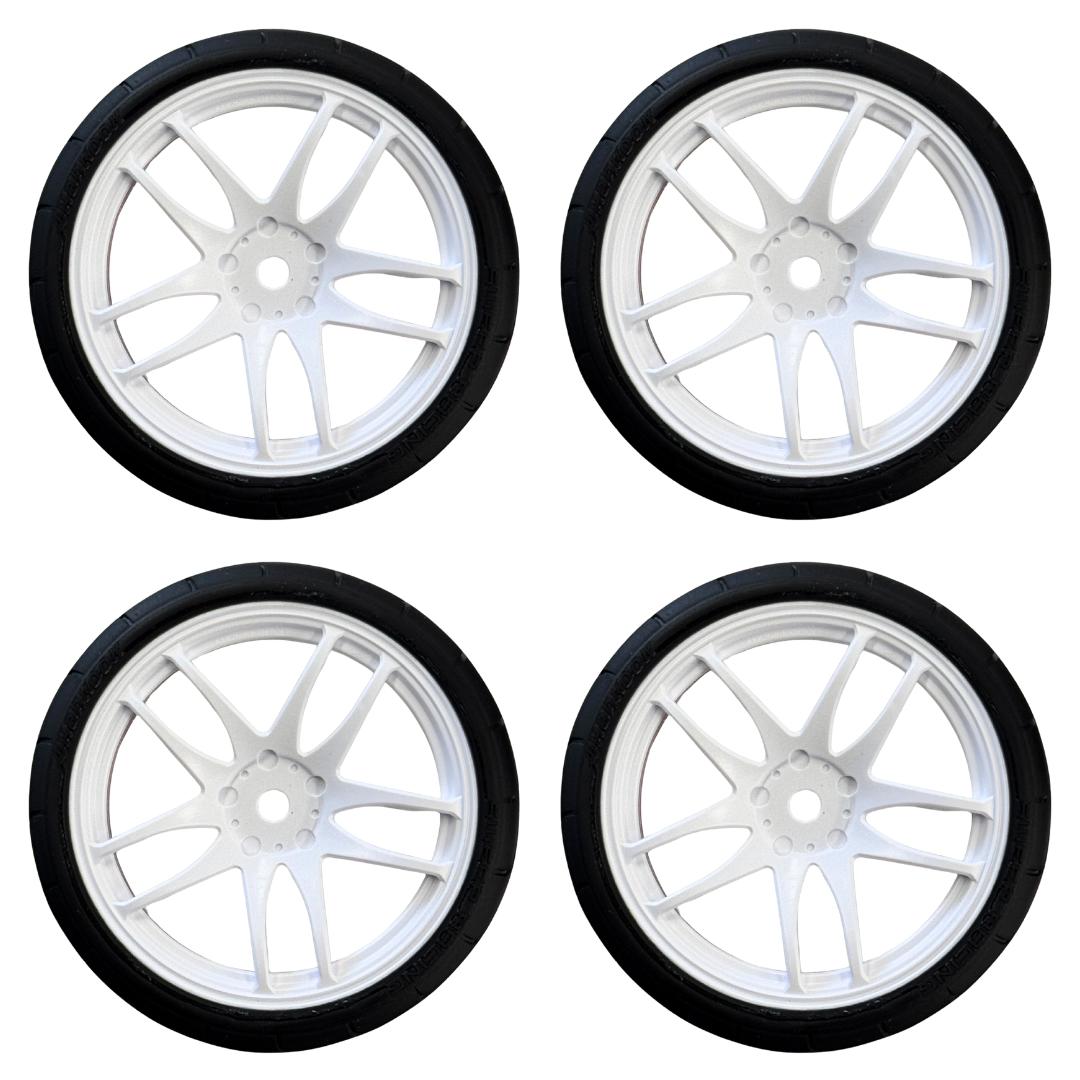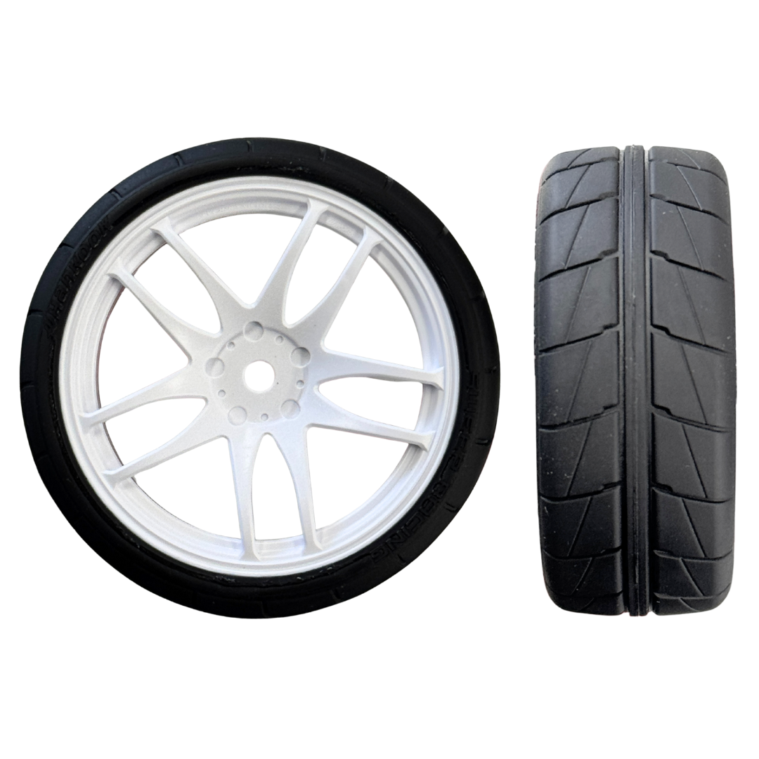 The SWEEP Hankook Treaded 32 touring car rubber tyres are pre-glued onto stylish Work Emotion wheels, delivering both scale realism and consistent on-road performance. These 1/10 scale tyres feature a 32 shore compound ideal for a variety of track conditions.