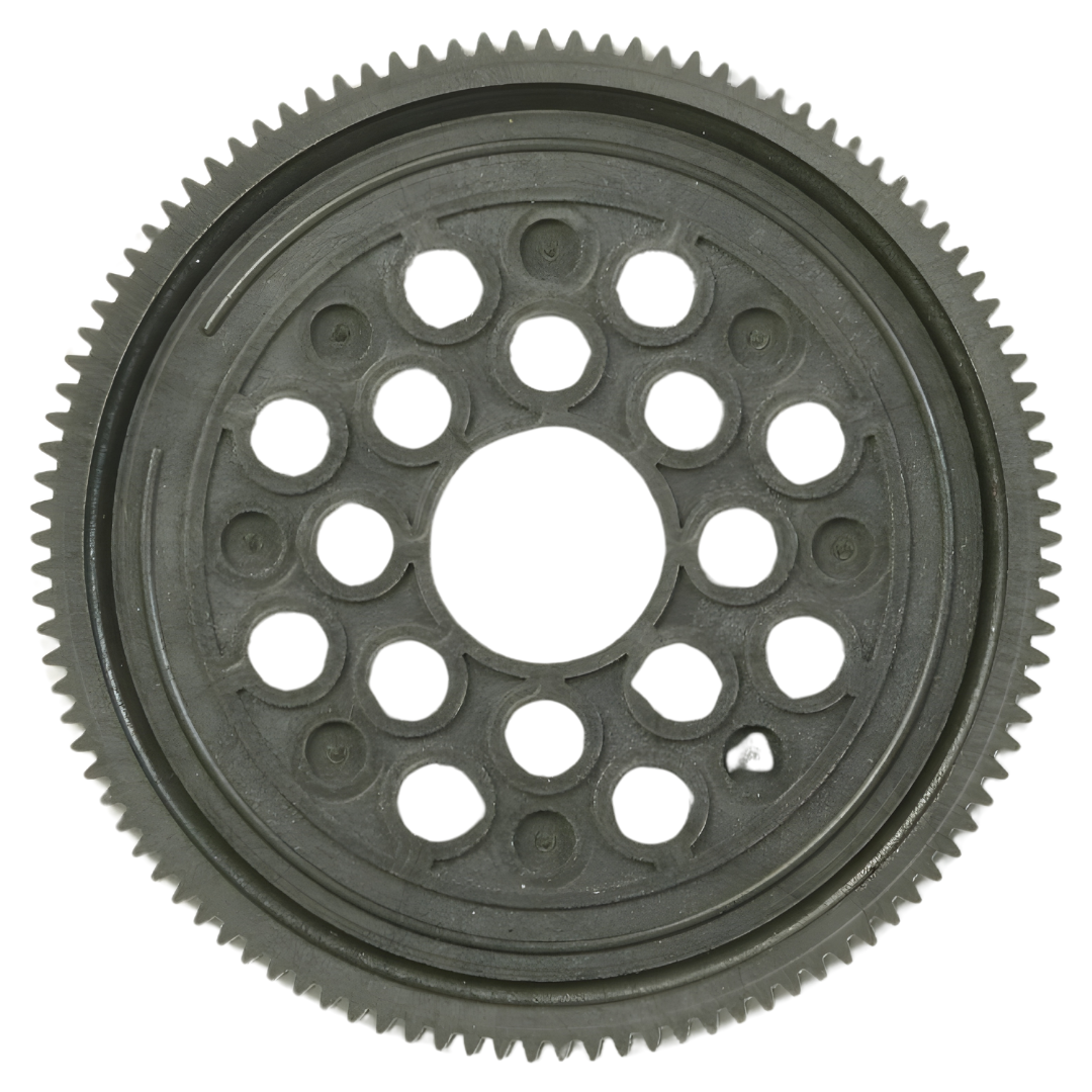 0.4 Module spur gear features finer teeth than standard kit-included 0.6 module gear, allowing minute setting changes to improve acceleration and efficiency. Gear made from special low friction plastic material and features high transmission efficiency.