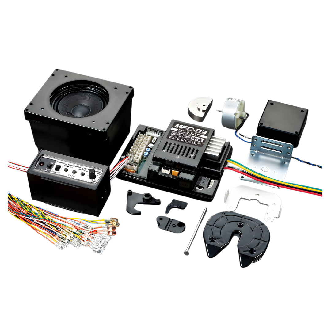 The Tamiya MFC-03 Multi-Function Control Unit brings unparalleled realism to your 1/14 scale Euro-style R/C tractor truck. It combines synchronised engine sounds, lights, and vibration effects with precision control, creating an immersive driving experience that mirrors real diesel-powered European trucks.