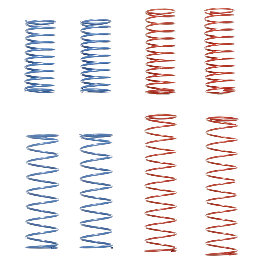 This DT-02 spring set allows fine tuning of damper performance by offering spring rates different from the standard chassis springs, helping optimise handling for various track conditions.