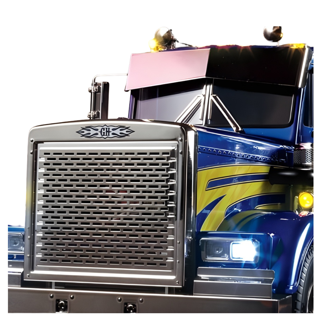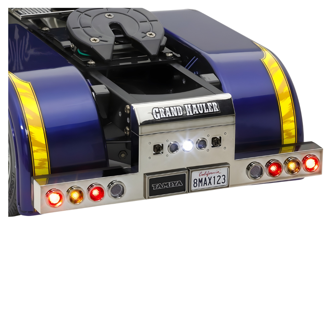 The Tamiya RC 1/14 Grand Hauler is an impressive on-road semi-truck assembly kit that recreates a customised North American big rig in stunning scale detail. Built on a robust ladder frame chassis with aluminium side channels and resin cross members, this model delivers authentic driving realism and mechanical accuracy. Featuring a front-mounted 540 brushed motor and 3-speed transmission, the Grand Hauler powers twin rear axles with built-in differentials for smooth cornering. With optional multi-function control support, you can further enhance the experience with realistic lights, sounds and vibration effects.