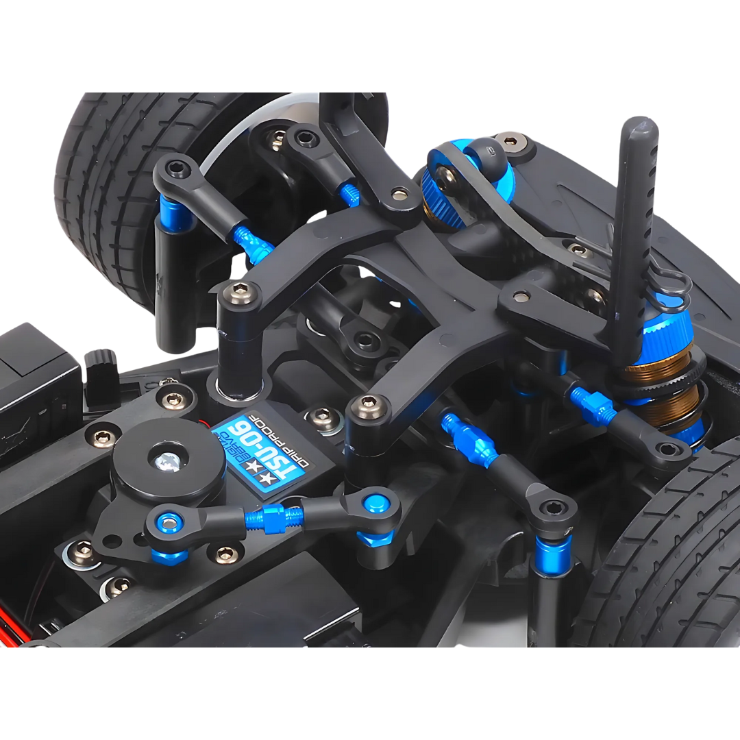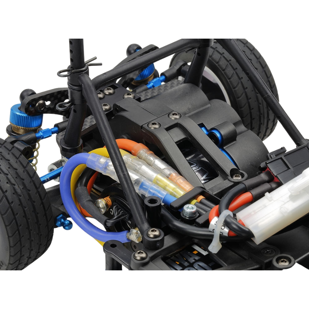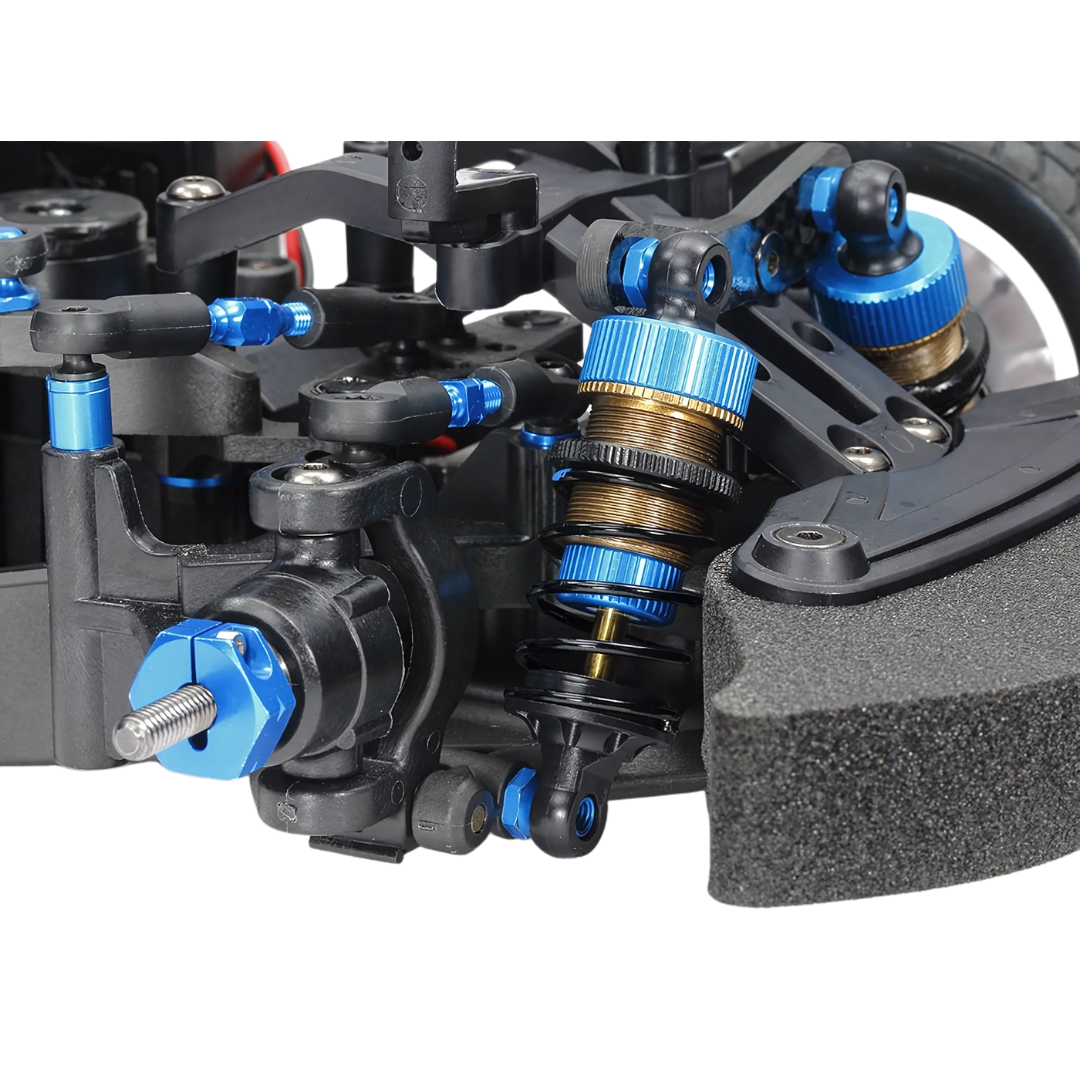 The Tamiya M-08R Chassis Kit is a high-performance rear-wheel-drive 1/10 scale R/C platform, enhanced with premium option parts for serious club racing. This limited-edition release builds upon the proven M-08 Concept by incorporating aluminium upgrades, carbon fibre components, and TRF Super Short Big Bore dampers for optimised handling and durability.