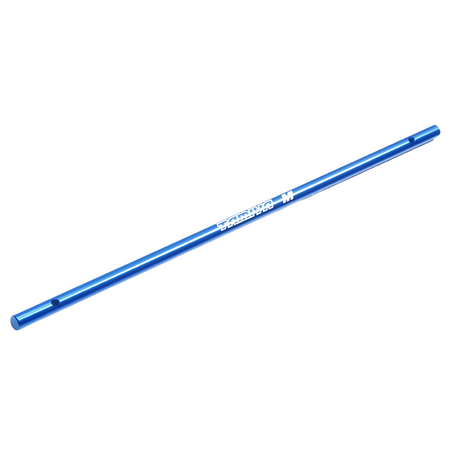 This is a propeller shaft made of lightweight aluminum. It is designed to be used with the Tamiya 4WD M-01X chassis. The blue anodized aluminum shaft is 1/3 the weight compared to its steel counterpart, which yields a more efficient drivetrain.