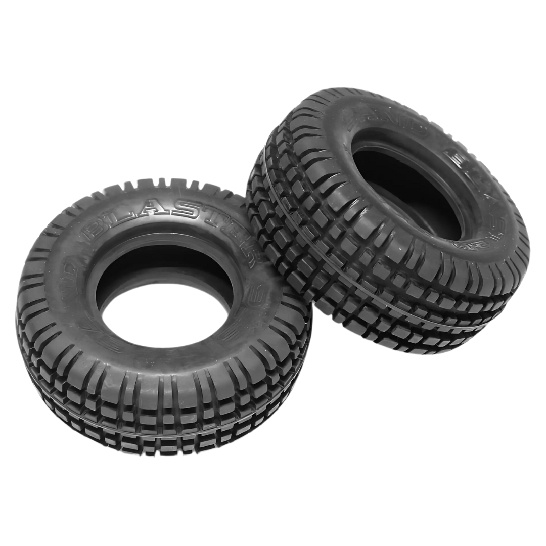 Replacement rear tyres designed for the Tamiya Buggy Champ 2009, Subaru Brat and Rough Rider re-release models. Offers reliable grip and authentic vintage styling for 1/10 scale off-road RC buggies.