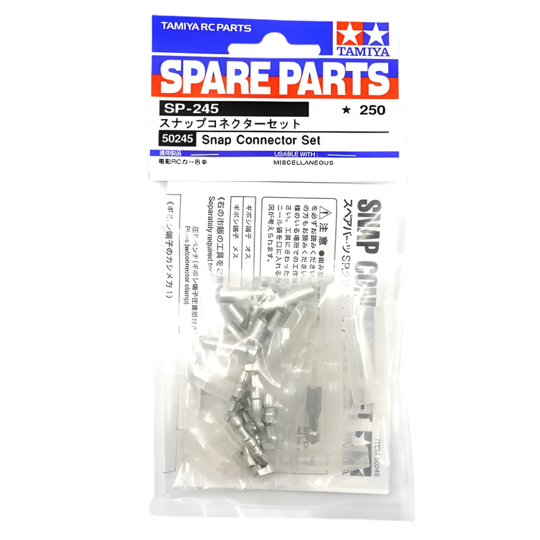 This snap connector set is designed for Tamiya R/C cars fitted with 540 brushed motors and compatible electronic speed controls, making it ideal for replacing worn or damaged motor connectors.