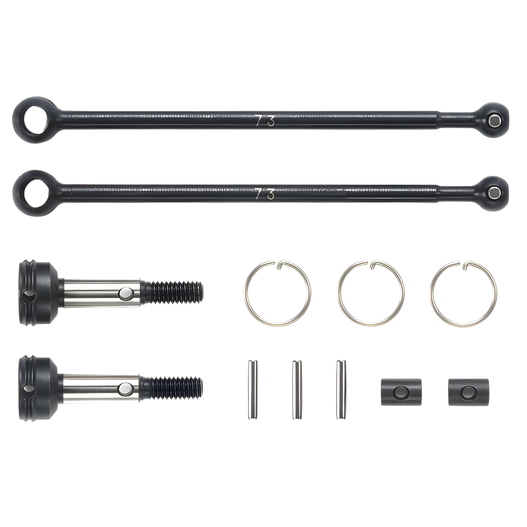These are universal drive shafts for the Tamiya TD4 off-road chassis. Use them to replace the standard dog bones for more efficient power transmission to the wheels. The set may be used on the front or rear.