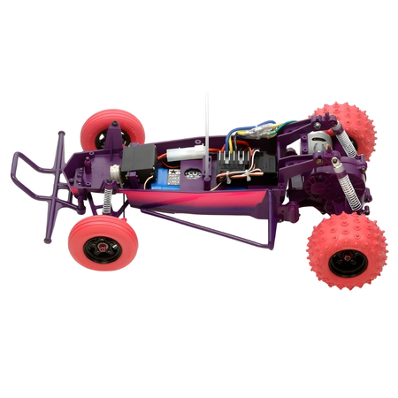 Three-piece wheels are used front and rear, paired with grooved front and pin spike rear tires for excellent grip. A set of black tires is also included for a more classic look. Combining iconic performance with bold, artistic styling, this version of the Hornet is both a collector's piece and a capable off-road machine.