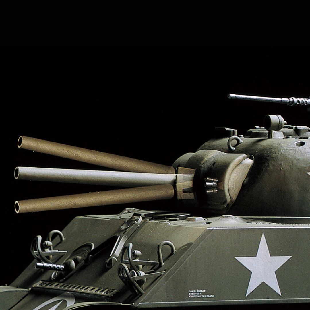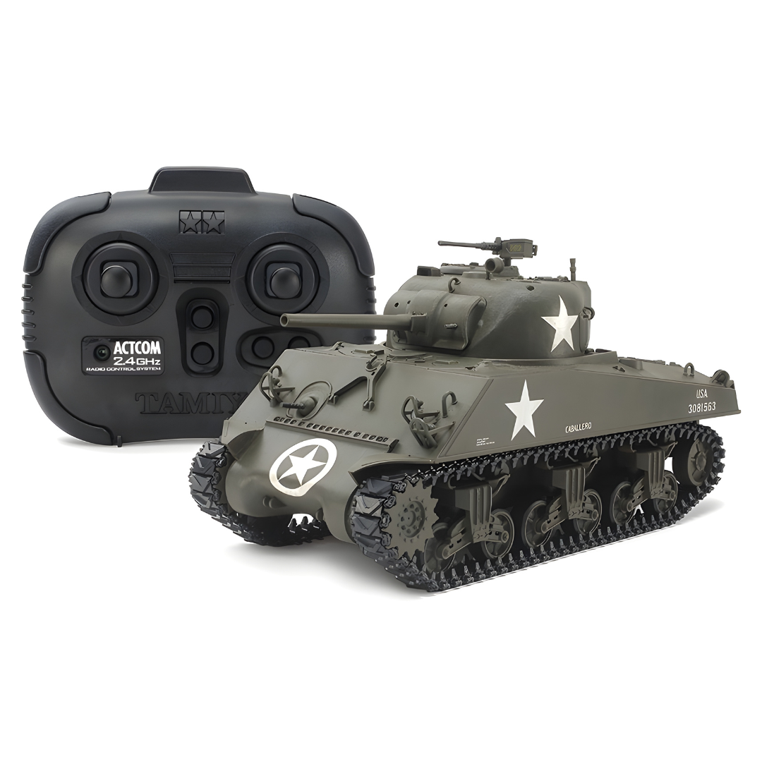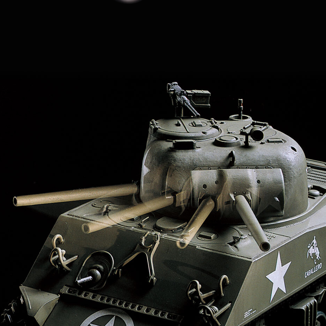Highly detailed 1/35 scale R/C model kit of the WWII-era U.S. M4A3 Sherman tank. Features realistic movement, rotating turret, and gun elevation powered by a dedicated R/C control system.