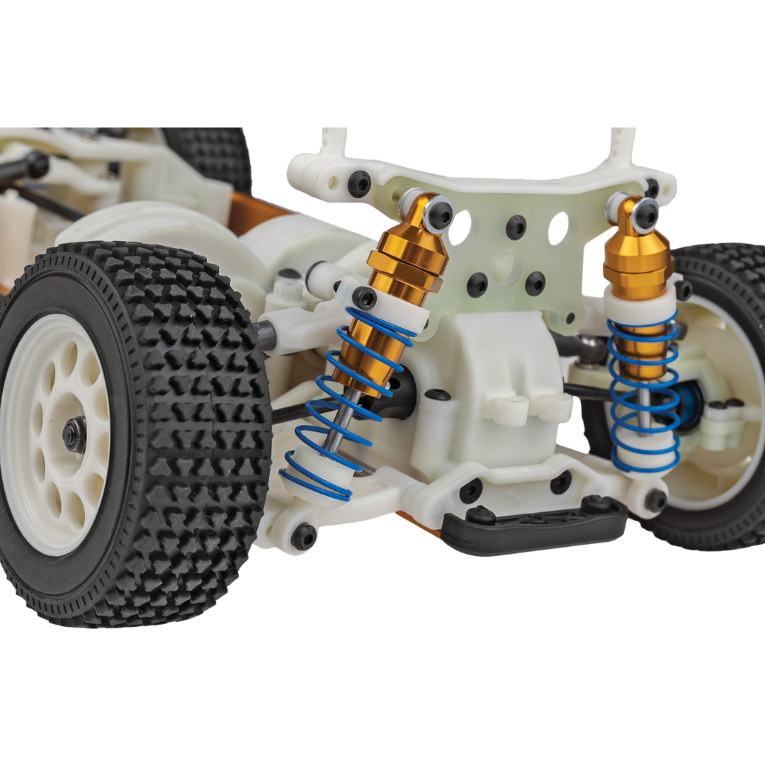 The Team Associated RC10 4x4 Rally Kit blends classic design with modern performance. Featuring a gold anodised aluminium tub chassis, clear 3-piece rally body, and detailed scale features, this kit delivers aggressive styling and rugged versatility. Built for durability and precision handling, it’s ready for both backyard action and competitive racing.