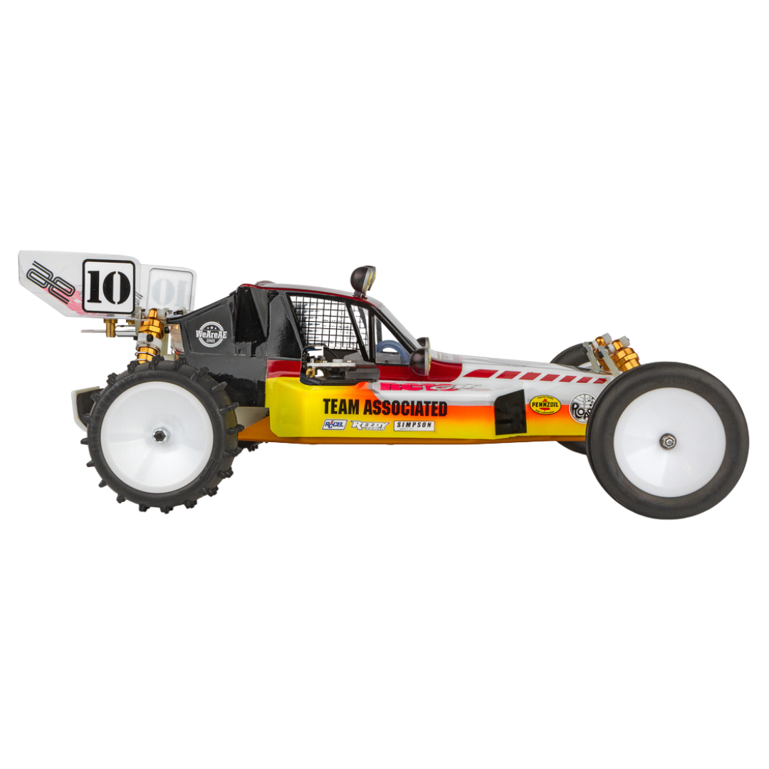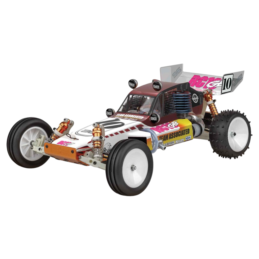 The Team Associated RC10GB Nitro Buggy Kit is an all-new 2WD gas-powered off-road racer combining the rugged performance of the RC10GT with the legendary suspension geometry of the RC10 Team Car. Delivering vintage style with modern engineering, it’s built for collectors, racers, and nitro RC enthusiasts alike.