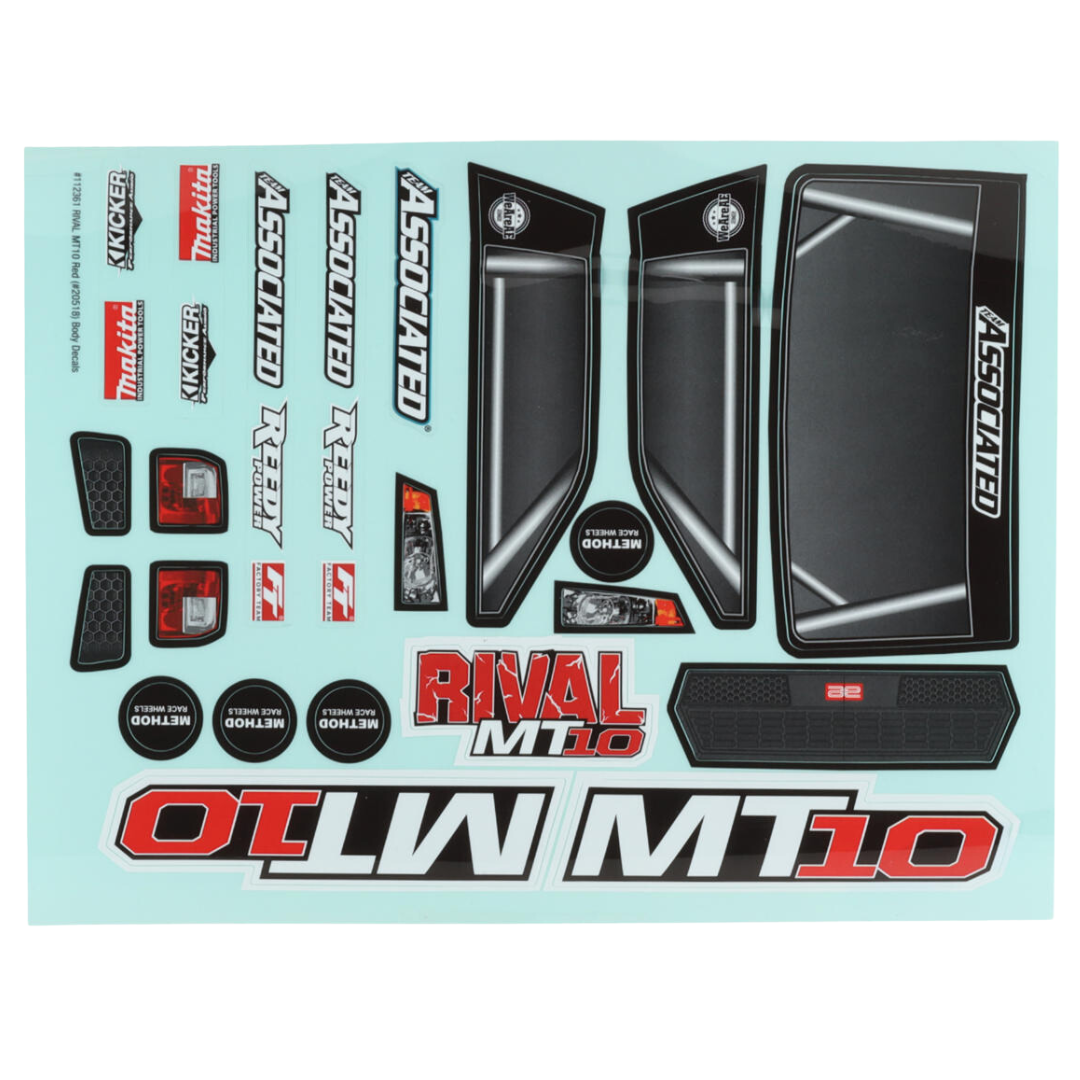 Team Associated Rival MT10 V2 Pre-Painted Body. This pre-painted body is a replacement intended for the Team Associated Rival MT10 V2. Package includes one pre-painted body with decal sheet.