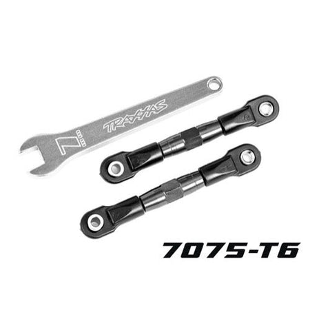 Camber links, rear (TUBES charcoal gray-anodized, 7075-T6 aluminum, stronger than titanium) (2) (assembled with rod ends and hollow balls)/ aluminum wrench (1)