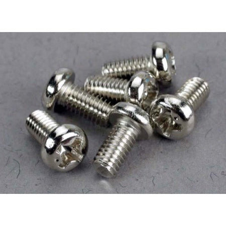 3x6 mm round-head machine screws with Phillips drive heads. Set of six.