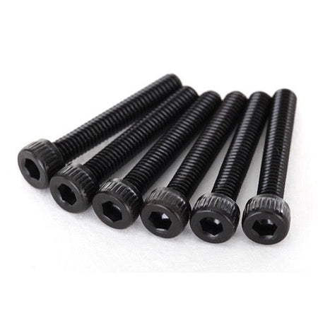 2.5x16 mm cap-head machine screws with hex drive heads. Set of six.