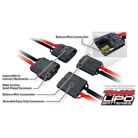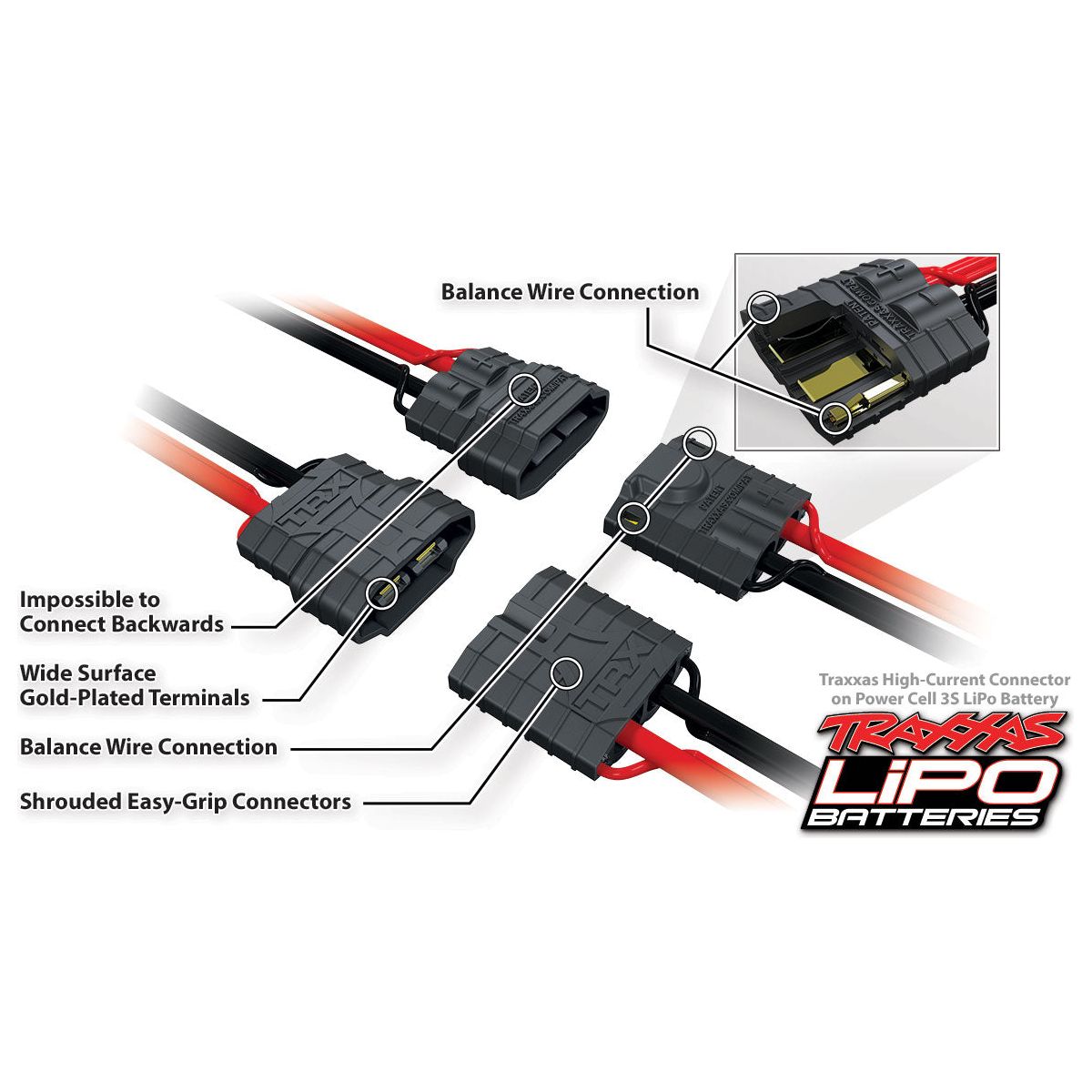- Traxxas iD connector allows seamless charging with Traxxas iD chargers