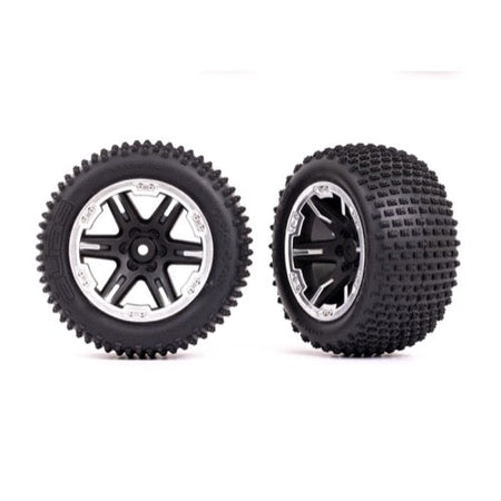 Traxxas 3772X Rear Alias Tyres and RXT Black and Chrome Wheels 2.8 inch TSM Rated Assembled and Glued 2pc