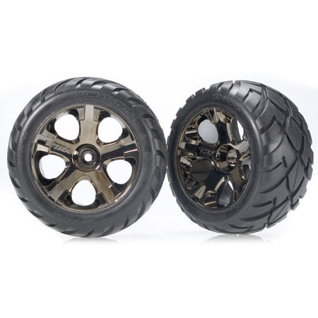 Anaconda performance street tires feature a specially formulated tire compound providing exceptional wear and sticky traction. Anaconda tires are mounted and pre-glued on futuristic All-Star chrome wheels for no-hassle, out-of-the-box bolt-on traction. Molded-foam inserts coupled with the directional tread design provide a balanced feel for the ultimate high-speed on-road experience. Anaconda tires and All Star wheels also sold separately.