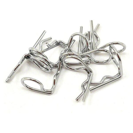 Traxxas replacement body clips for the Nitro Revo Monster Truck. Metal Construction. Silver in Color. Bent for Easy Removal.
