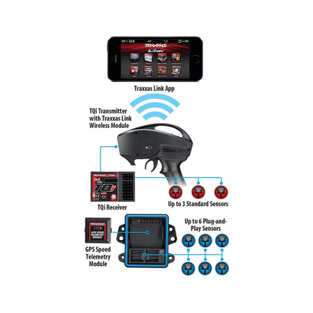 Traxxas changed the game with Telemetry allowing you to monitor and record real-time data from your vehicle. By combining the water-sealed Telemetry Expander with the GPS Module, Traxxas gives you the ability to accurately track real-time speed! The new Telemetry Expander allows you to support up to six plug-and-play smart sensors in addition to the three standard Traxxas sensors. There are currently three different smart sensors to select from; voltage, temperature, and GPS. The smart sensor advantage is that the Traxxas Link application automatically recognizes the sensors, so setup only takes a few moments! Install the Telemetry Expander, plug in the sensors and communication cable and prepare for Telemetry like you've never seen! With the revolutionary Traxxas TQi radio system, Traxxas Wireless Link Module, and the Traxxas Link app (available free from Google Play or the Apple App Store), your Apple iPhone (4S, 5, 5C, 5S), iPod Touch (5th generation and later versions), iPad (3rd generation and later versions), iPad Mini, or Android 4.4 equipped device, can be transformed into a powerful tuning tool that allows you to replace the transmitter's button/LED programming system with an intuitive, high-definition, full-color graphical user interface. You can make changes to radio trims and settings, input vehicle profiles, update model memory, and adjust setups for different driving conditions by means of a virtual dashboard and interactive screens. Using the complete TQi system and impressive Traxxas Link app makes pro-level transmitter tuning fast, convenient, and easy.