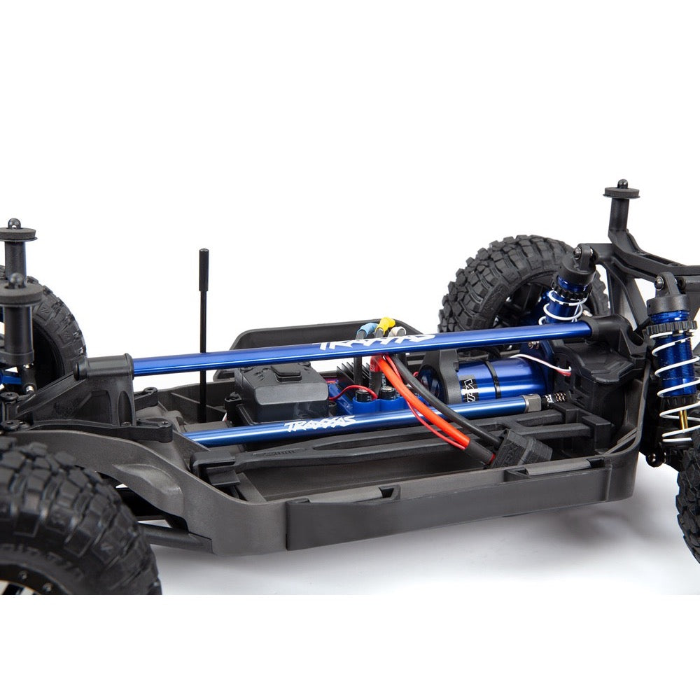 The heavy-duty chassis brace includes mounts in the kit for both the Slash 4X4 with Low-CG chassis and Rustler 4X4 models. The mounts fit securely into existing mounting points on the chassis with no drilling required. Heavy-duty chassis braces are made by Traxxas, for Traxxas, so installation is easy with a perfect factory fit.
