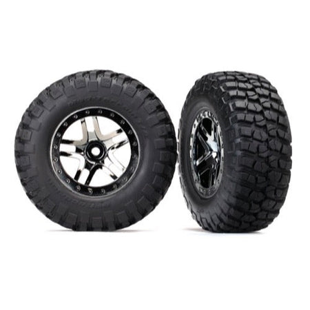 Tires & wheels, assembled, glued (SCT Split-Spoke black chrome beadlock style wheels, BFGoodrich® Mud-Terrain™ T/A® KM2 ultra-soft S1 compound off-road racing tires, foam inserts) (2) (4WD f/r, 2WD rear) (TSM rated)