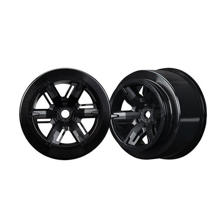 Black left and right X-Maxx® wheels. Fits 24 mm splined hex, front or rear.