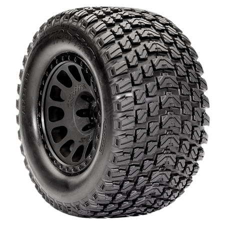 Low-profile Gravix race tyres pre-mounted on matte black XRT wheels, assembled and glued with foam inserts for high-speed performance and durability. Sold as a left and right pair, these are ideal for both track and off-road conditions.
