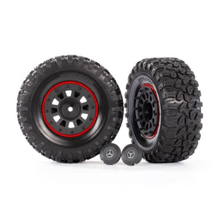Tires & wheels, assembled, glued (2.2" black Mercedes-Benz® G 63® wheels, Canyon RT 4.6x2.2" tires) (2)/ center caps (2)/ beadlock rings (2) (requires #8255A extended thread stub axle)