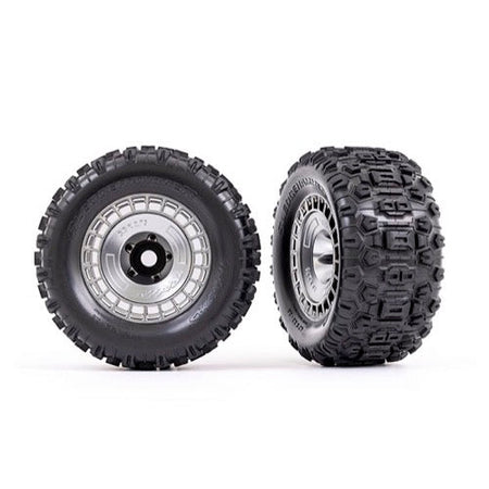 Tires and wheels, assembled, glued (3.8" satin chrome wheels, satin chrome wheel covers, Sledgehammer® tires, foam inserts) (2)