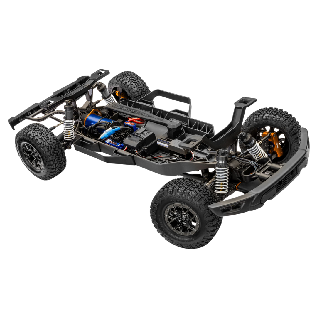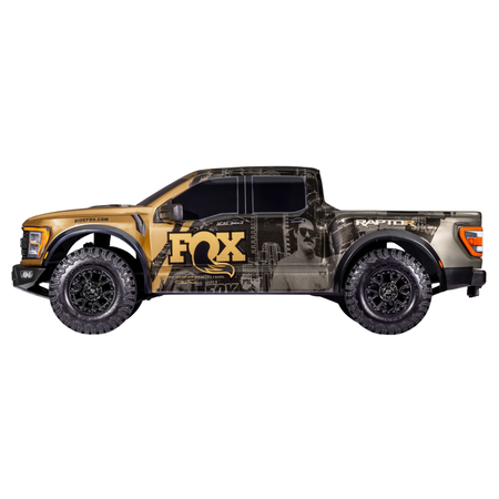 The Traxxas Ford Raptor R 4X4 Ultimate is a powerful 1/10 scale short course truck delivering speeds over 60 mph with a 4S LiPo (sold separately). Featuring a detailed licensed Pro Scale Ford body, clipless mounting system, 2400 Kv brushless power, and advanced electronics, it's built for high-speed off-road performance with stunning realism.