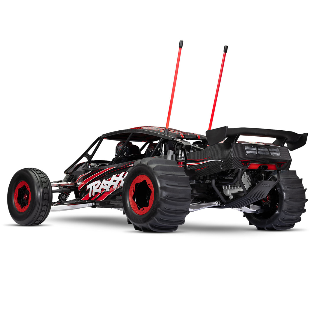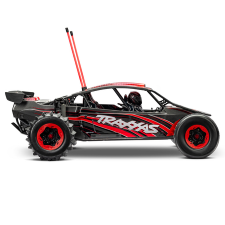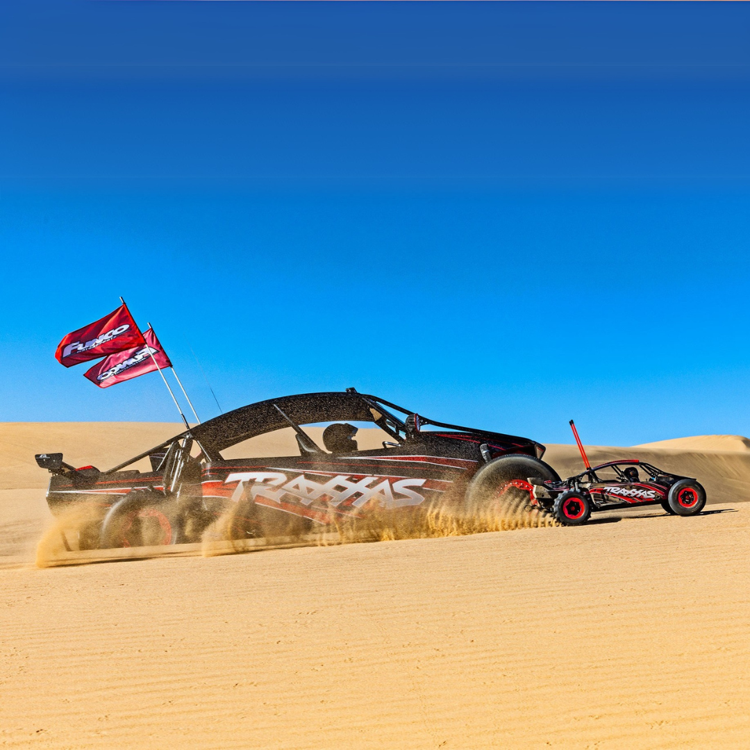 The Traxxas Funco® Pro Scale® 2WD Brushless RTR Sand Car is an adrenaline-pumping, high-speed machine built for the dunes. Inspired by the real 1000+ HP Funco Motorsports sand car, this RC replica delivers scale realism with cutting-edge performance. Featuring a VXL-8s Brushless Power System, this sand car reaches speeds of 55+ mph, making it the fastest and most powerful addition to the X-Series™ lineup. Equipped with high-speed belted sand paddle tyres and a long-travel suspension, it offers unmatched handling and control over rough terrain.